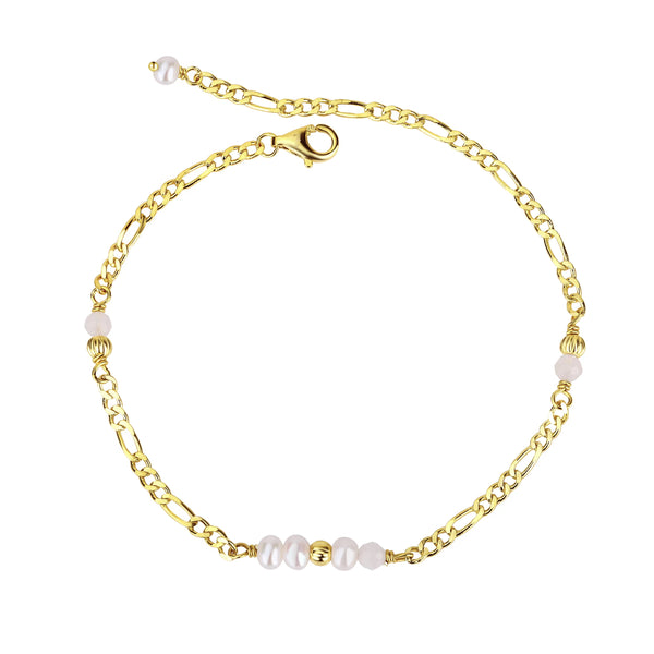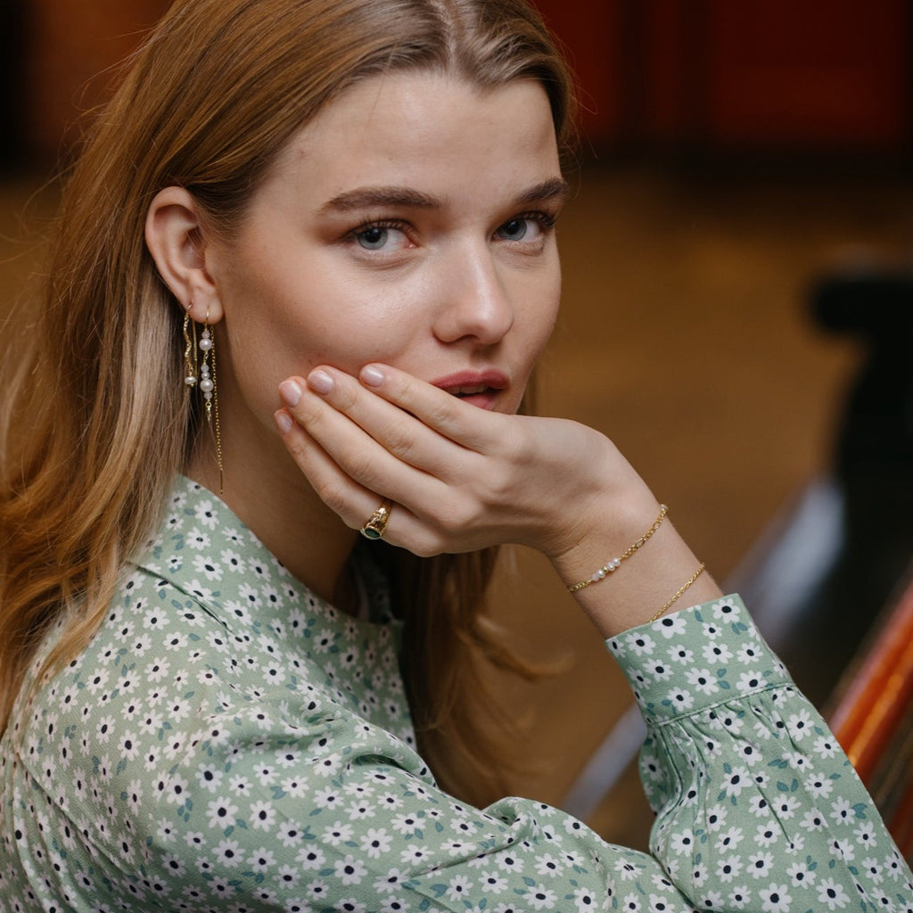 Takara armbånd er i 14 karat guldbelagt sølv med smukke perler af ferskvands og halvædelsten, samt en rå kæde. Armbåndet kan sagtens mixes med andre armbånd for et flot, moderne look og den passer perfekt til alle lejligheder: hverdage som festlige begivenheder.