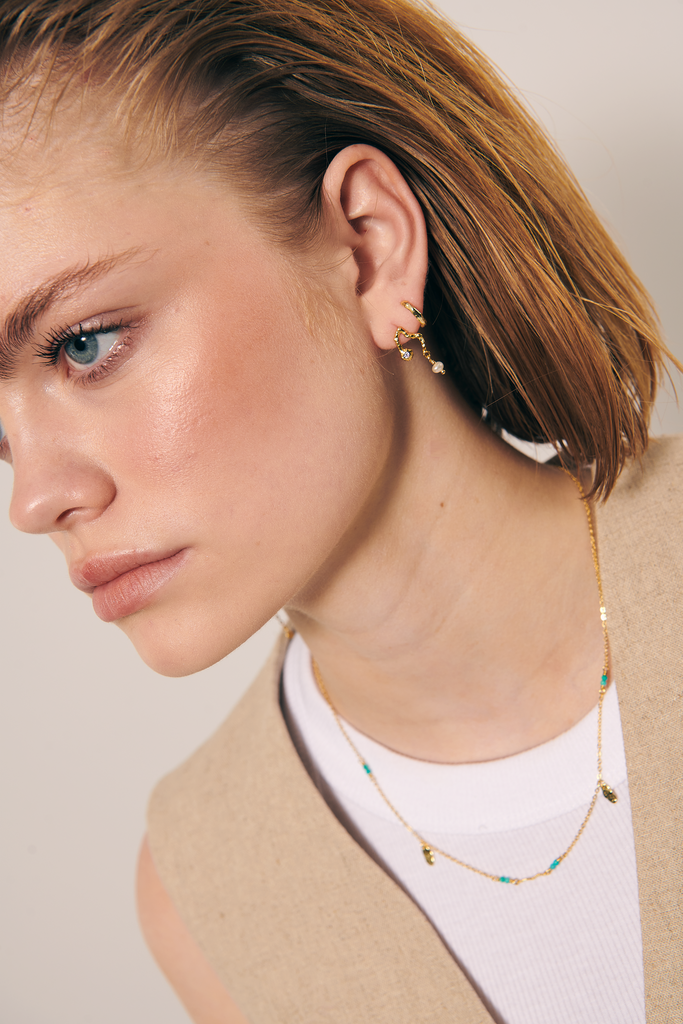 Octavia halskæde er i 14 karat guldbelagt S925 sterling sølv med flotte turkiser. Halskæden kan sagtens mixes med andre armbånd for et flot, moderne look og den passer perfekt til alle lejligheder: hverdage som festlige begivenheder.