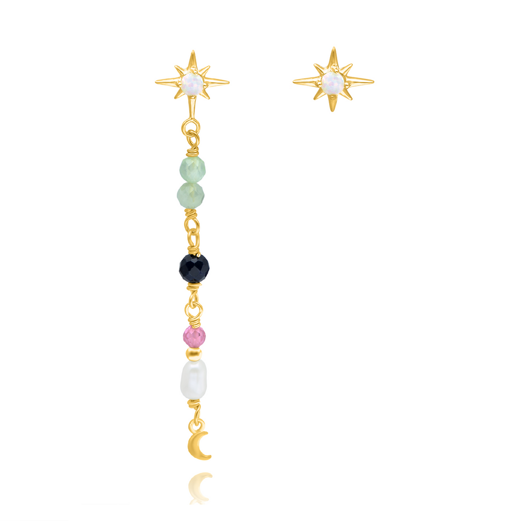 Smukke mix øreringe med stjerne stikkere, ferskvandsperler, halvædelsten, opal og zirkonia i 14 Karat guldbelagt 925 sterling sølv.