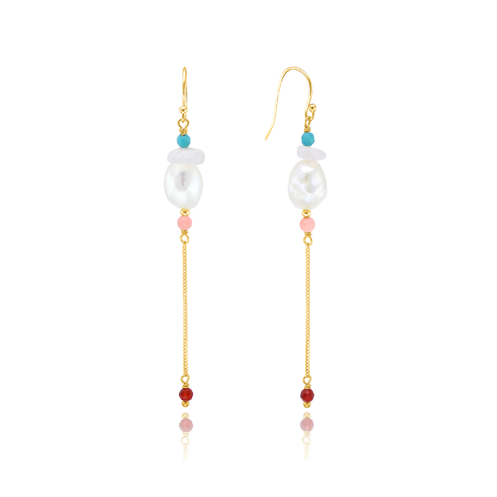 Hollie øreringe er med cool rundt vedhæng med fine ferskvandsperler og halvædelsten samt rå kæder, - de passer perfekt til at mixe med stilrene øreringe, men kan også sagtens bæres alene for et elegant eller råt look, alt efter egen stil!