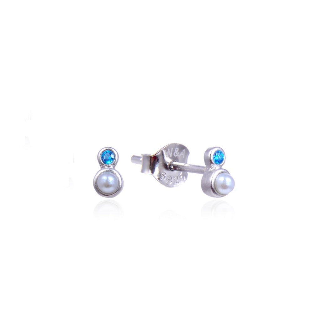 Smukke ørestikker i 925 sterling sølv med en fin perle og blå zirkonia.