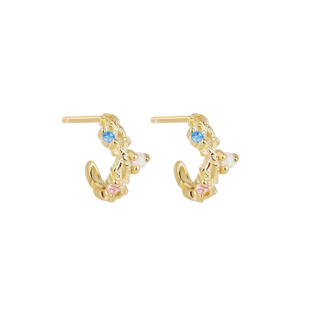 Iben er et par smukke hoop øreringe i 14 Karat guldbelagt 925 sterling sølv med smukke Zirkonia sten og Opal sten.