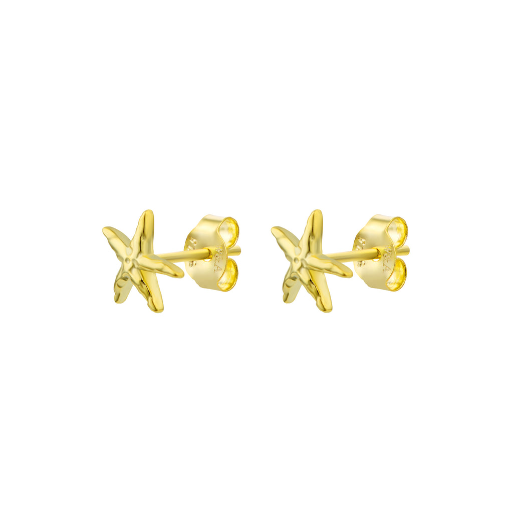 Fine små søstjerne stud øreringe 14 karat guldbelagt 925 sterling sølv med små blå zirkonia sten.