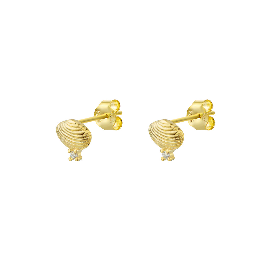 Fine små muslingeskaller i 14 karat guldbelagt 925 sterling sølv med små hvide zirkonia sten.
