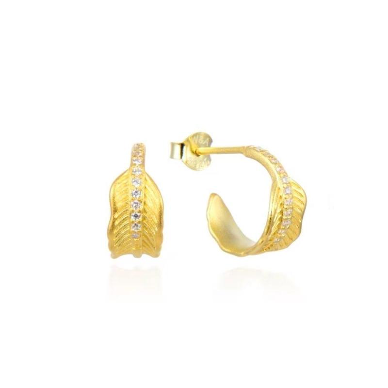 Smukke fjer hoop i 14 Karat guldbelagt 925 sterling sølv med smukke hvide zirkonia