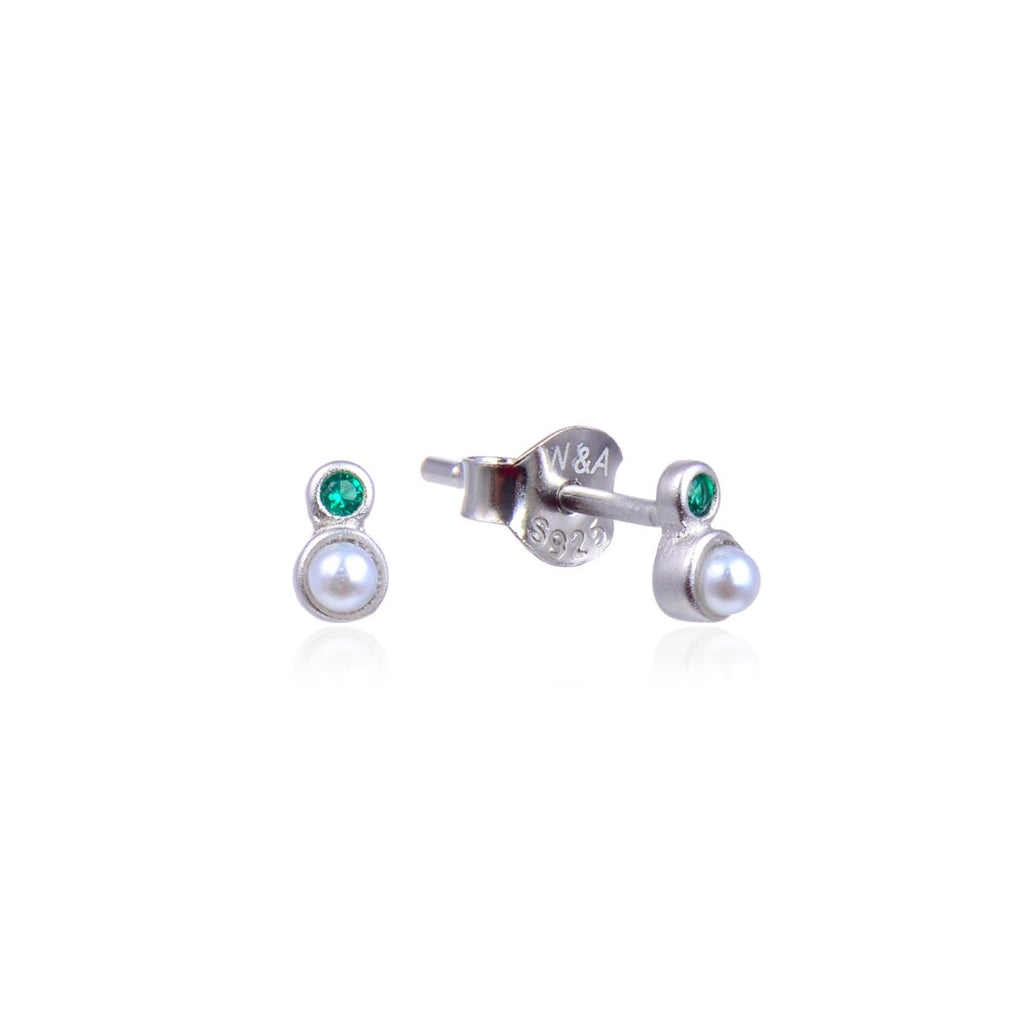 Smukke ørestikker i 14 Karat guldbelagt sterling sølv med en fin perle og grønne zirkonia.