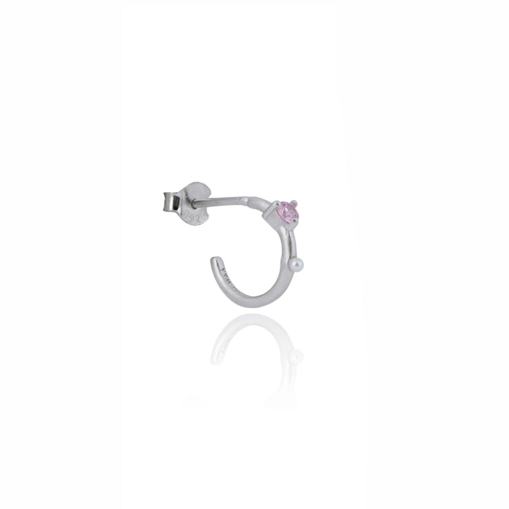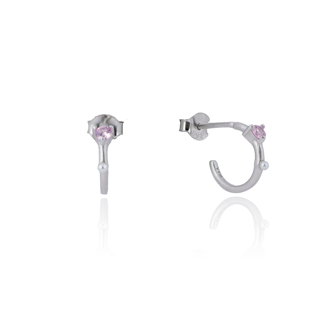 Smukke hoops i 925 sterling sølv med ferskvandsperle og pink zirkonia.