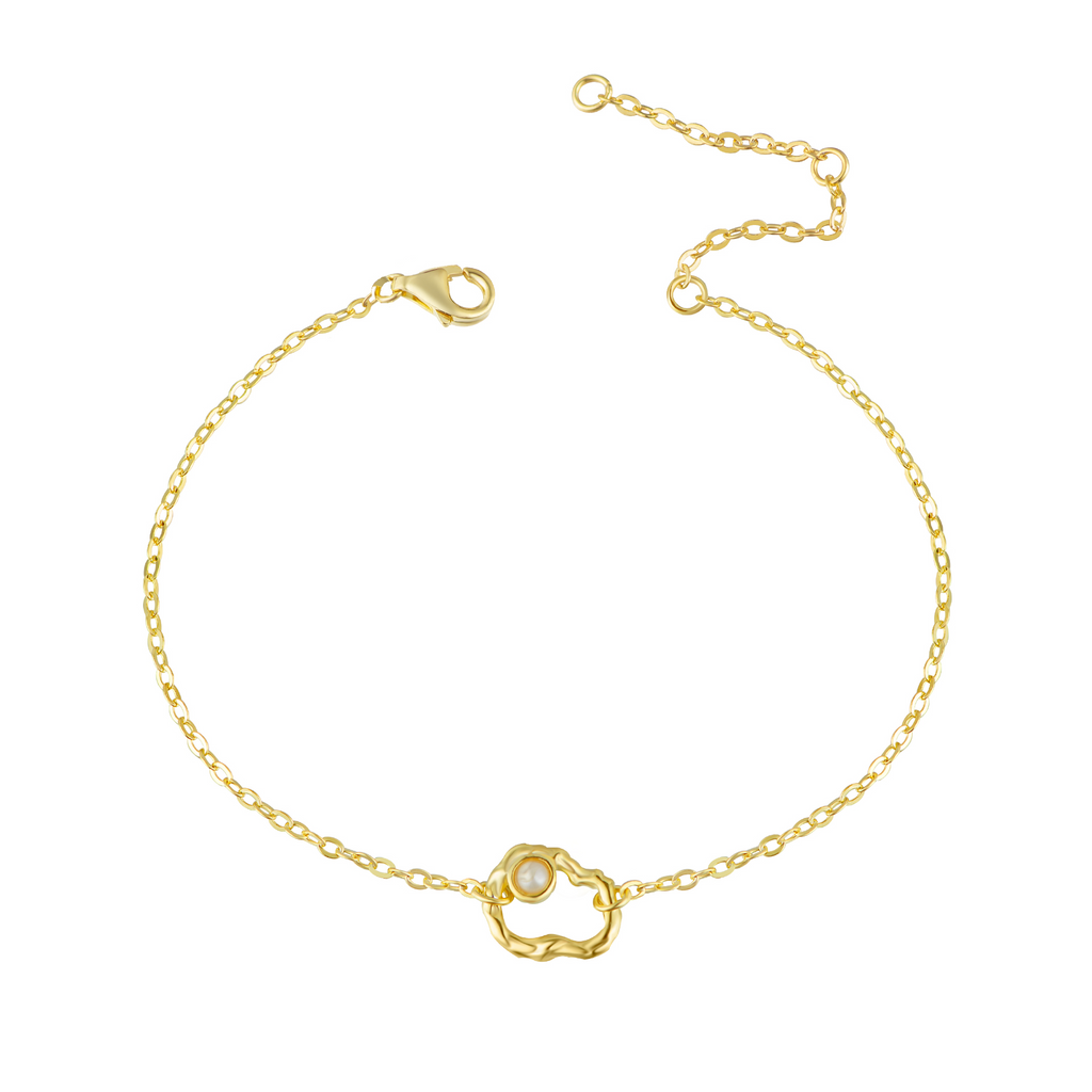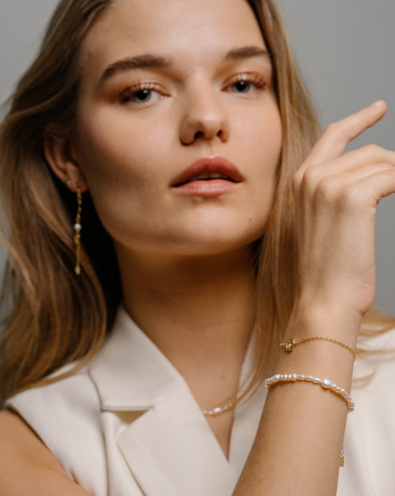 Violet armbånd er i 14 karat guldbelagt sølv med en fin ferskvands perle. Armbåndet kan sagtens mixes med andre armbånd for et flot, moderne look og den passer perfekt til alle lejligheder: hverdage som festlige begivenheder.