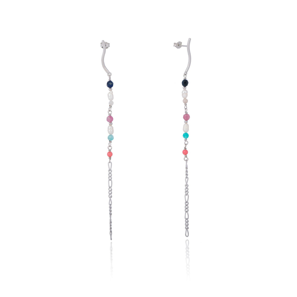 Saga øreringe er med fine halvædelsten og ferskvandsperler, samt en fin kæde - de passer perfekt til at mixe med stilrene øreringe, men kan også sagtens bæres alene for et elegant eller råt look, alt efter egen stil!