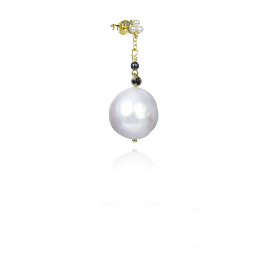 Frida ørering er med en smuk barok perler samt fine halvædelsten af dalmatiner og hæmatit - de passer perfekt til at mixe  andre øreringe, men kan også sagtens bæres alene for et elegant eller råt look, alt efter egen stil!