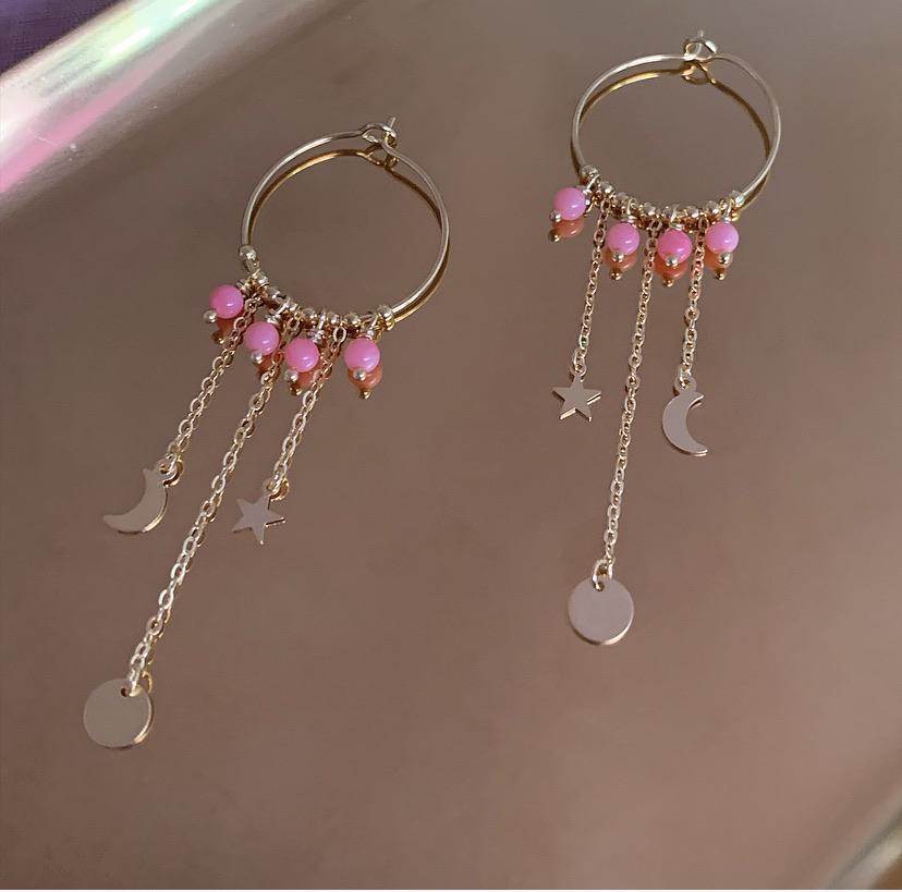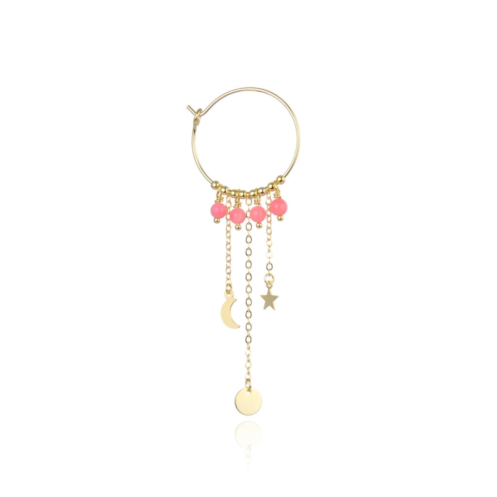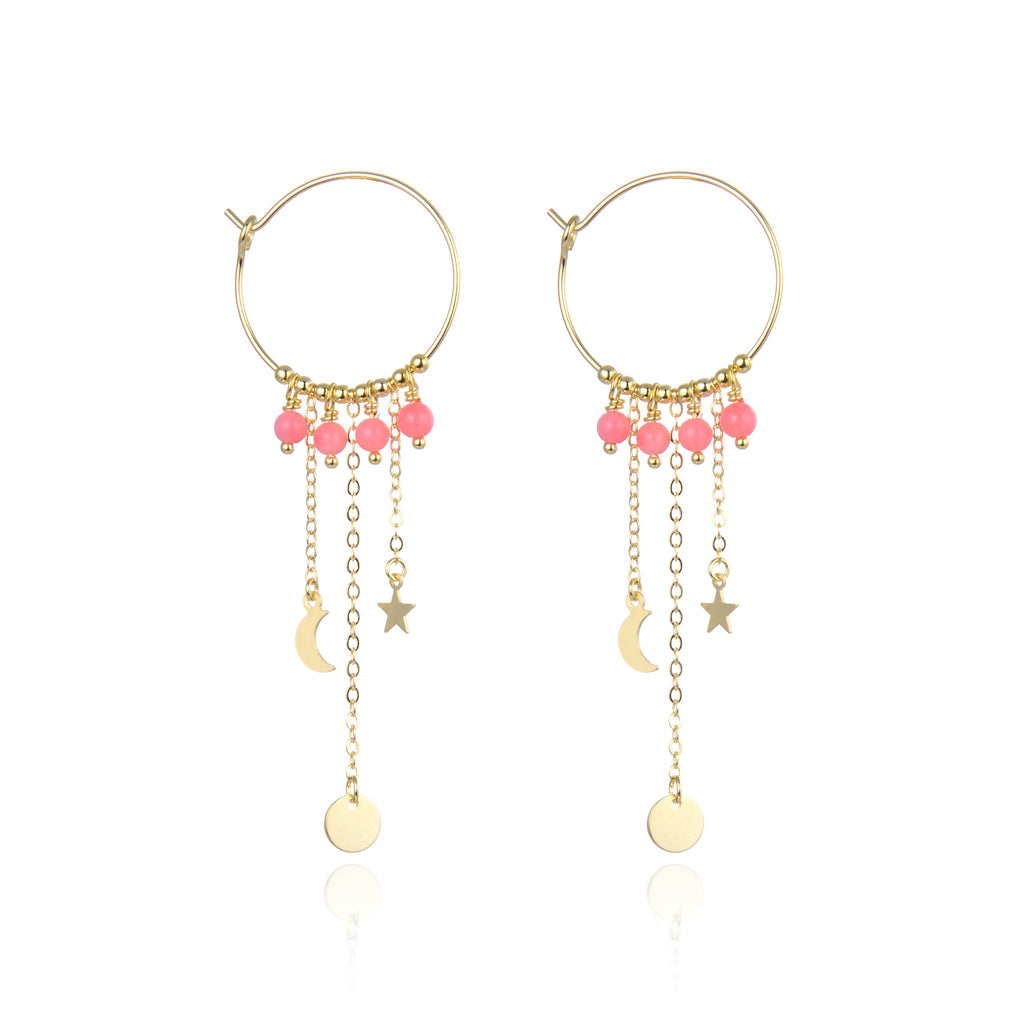 Naya øreringe er med fine koral perler samt vedhæng af sol, måne og stjerne - de passer perfekt til at mixe med stilrene øreringe, men kan også sagtens bæres alene for et elegant eller råt look, alt efter egen stil!